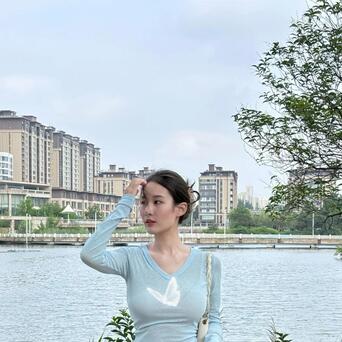 上衣的柔和蓝调,温柔如水,贴身剪裁勾勒出曼妙身姿。下身紧身牛仔短裤,深蓝更显质感,完美包裹腿部线条,尽显好身材。