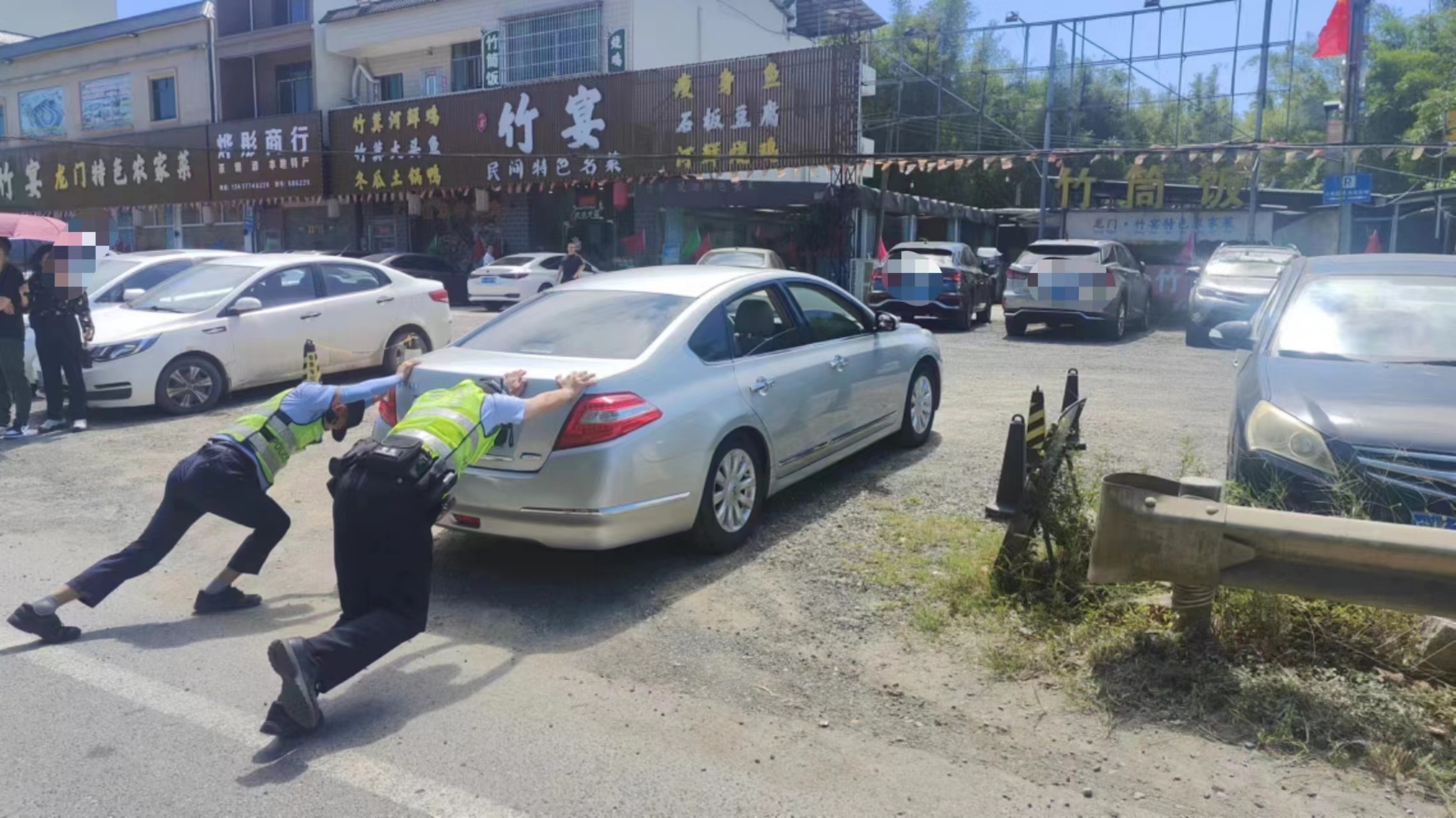 10月4日11时20分许,惠州市龙门县公安局交警大队在辖区龙华镇沙迳路段执勤期间,发现一辆粤S7***Z的银白色小轿车停在马路中央,致使过往车辆行驶缓慢,造成了轻微堵塞。