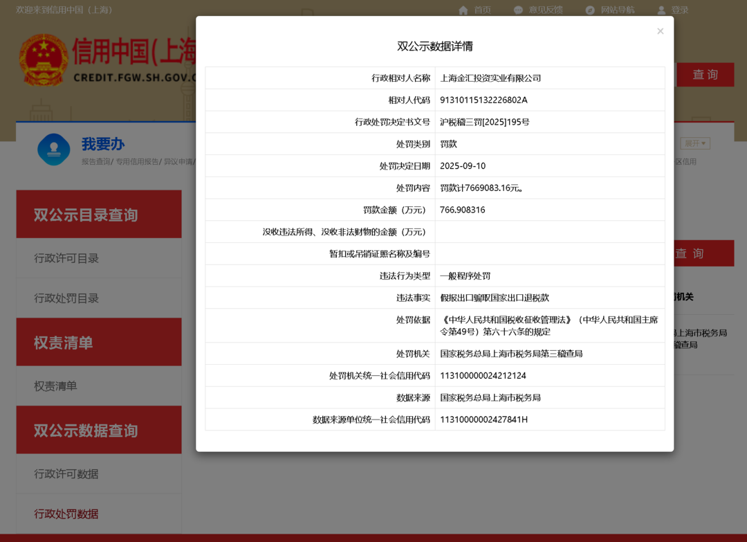 近日,齐鲁晚报·齐鲁壹点记者从信用中国(上海)获悉股票配资风险零风险,上海金汇投资实业有限公司因假报出口骗取国家出口退税款,被国家税务总局上海市税务局第三稽查局罚款766.9万余元。